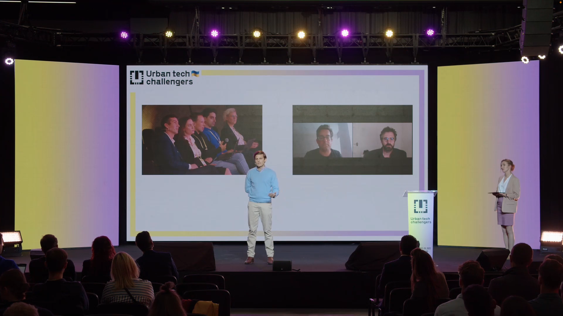 Chief Product of InfoTiles, Adam Wood, on the main stage of Urban Tech Challengers